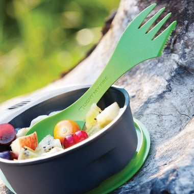 The Light My Fire Spork is a versatile utensil made from BPA-free material, perfect for enjoying meals on the go without weighing down your pack.