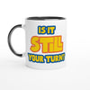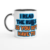 This beautiful ceramic mug is perfect for any event of the day. Your morning coffee, a hot chocolate, or any other hot beverage you enjoy. The mug is glossy white with a colored rim, inside, and handle. The prints come out beautifully and vividly on it. The print retains its quality and luster when used in both microwaves and the dishwasher.